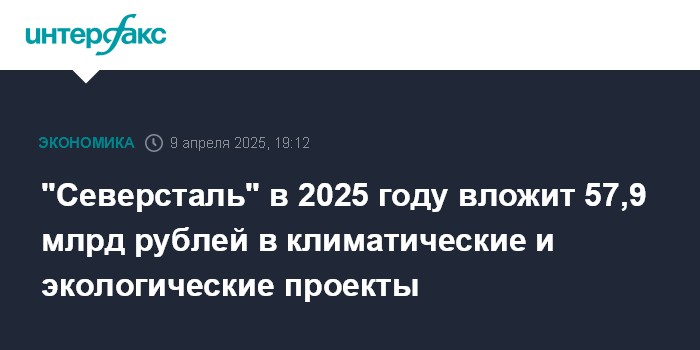 Москва. 9 апреля. INTERFAX.RU - "Северсталь" в 2025 году планирует инвестировать 57,9 млрд рублей в проекты для реализации программ в области климата и экологии, говорится в годовом отчете компании.
