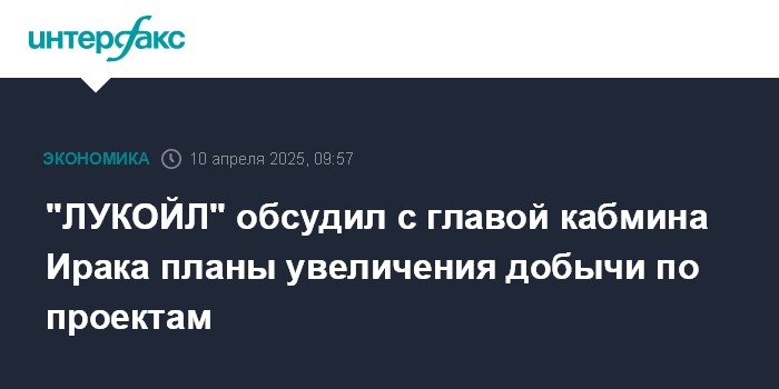 Москва. 10 апреля. INTERFAX.RU - Премьер-министр Ирака Мухаммед аль-Судани обсудил с делегацией российской нефтяной компании "ЛУКОЙЛ" ее планы по увеличению добычи в стране.
