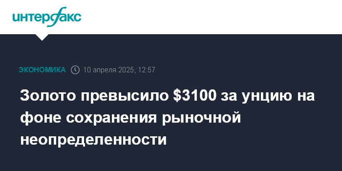 Золото превысило $3100 за унцию на фоне сохранения рыночной неопределенности