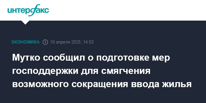 "Вывод новых проектов, конечно, замедление спроса, - может быть, если ключевая (ставка) продержится, - может сказаться на объеме ввода в 2027-2028 годах. И здесь, конечно, может быть, потребуются меры поддержки. Правительство работает над ними", - сказал Мутко.