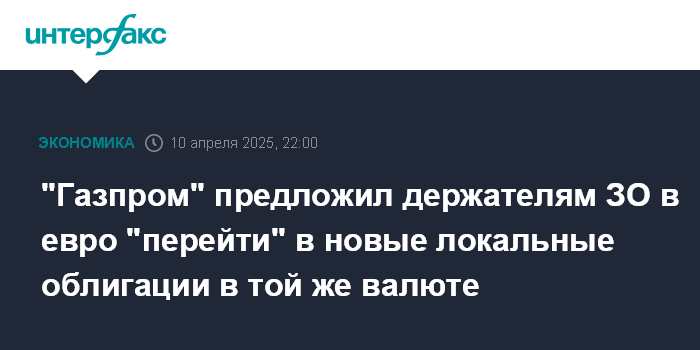 "Газпром" предложил держателям ЗО в евро "перейти" в новые локальные облигации в той же валюте