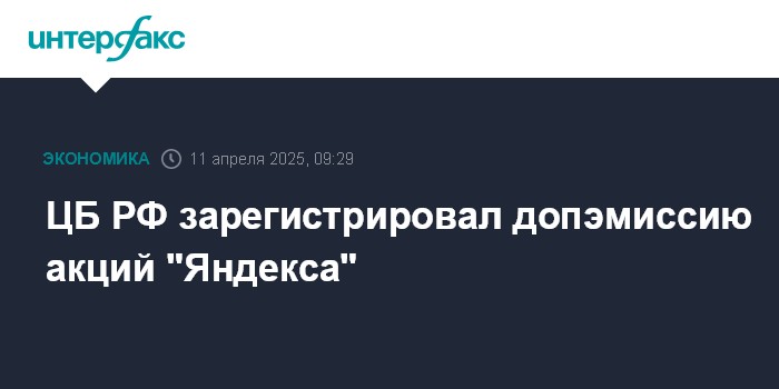 ЦБ РФ зарегистрировал допэмиссию акций "Яндекса"