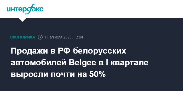 Москва. 11 апреля. INTERFAX.RU - Объем продаж автомобилей белорусского бренда Belgee на российском рынке в первом квартале 2025 года увеличился почти на 50% по сравнению с показателем аналогичного периода прошлого года, сообщили "Интерфаксу" в пресс-службе белорусского предприятия "БелДжи" .