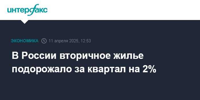 Москва. 11 апреля. INTERFAX.RU - В России за первый квартал 2025 года вторичное жилье подорожало на 2%, говорится в исследовании "Мира квартир".