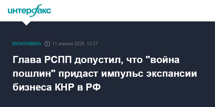 Глава РСПП допустил, что "война пошлин" придаст импульс экспансии бизнеса КНР в РФ