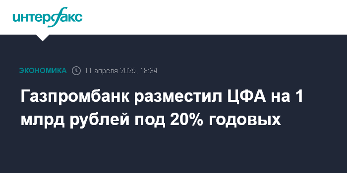 Газпромбанк разместил ЦФА на 1 млрд рублей под 20% годовых