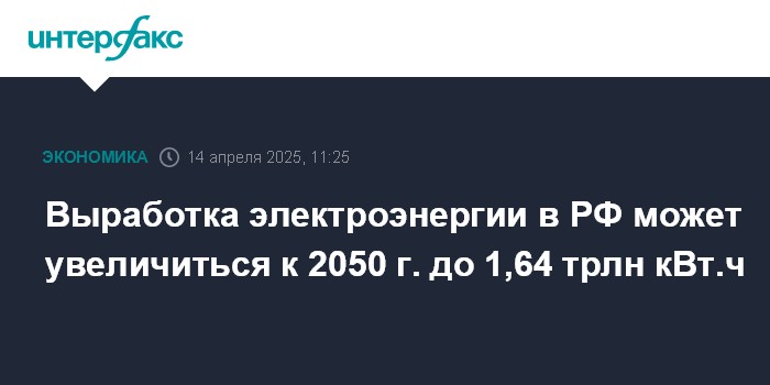 Выработка электроэнергии в РФ может увеличиться к 2050 г. до 1,64 трлн кВт.ч