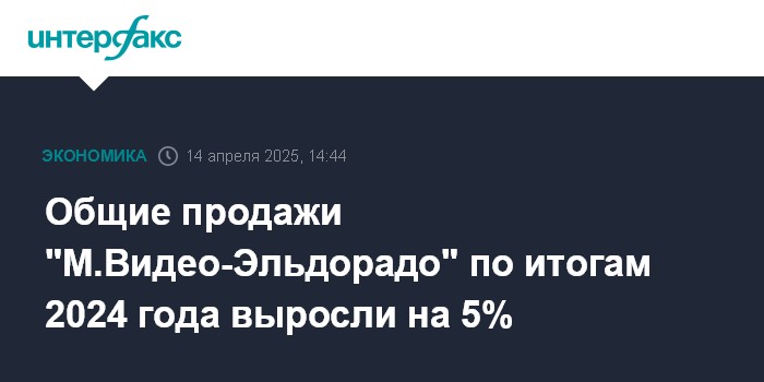 Москва. 14 апреля. INTERFAX.RU - Общие продажи (GMV) "М.Видео-Эльдорадо" по итогам 2024 года выросли на 5%. Об этом говорится в презентации компании для инвесторов, подготовленной в преддверии выпуска облигаций.