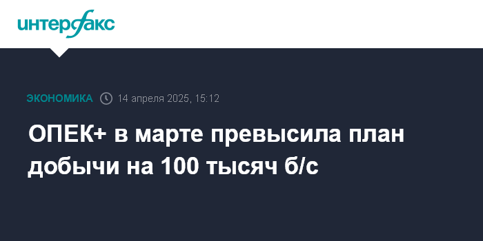 ОПЕК+ в марте превысила план добычи на 100 тысяч б/с