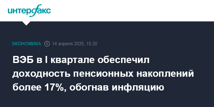 ВЭБ в I квартале обеспечил доходность пенсионных накоплений более 17%, обогнав инфляцию