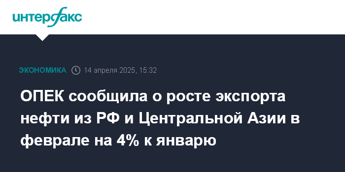 ОПЕК сообщила о росте экспорта нефти из РФ и Центральной Азии в феврале на 4% к январю