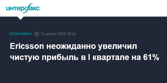 Москва. 15 апреля. INTERFAX.RU - Шведский производитель телекоммуникационного оборудования Ericsson AB увеличил чистую прибыль в первом квартале на 61%, выручку - на 3%.