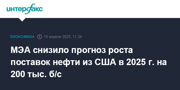 МЭА снизило прогноз роста поставок нефти из США в 2025 г. на 200 тыс. б/с