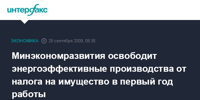 Минэкономразвития освободит энергоэффективные производства от налога на имущество в первый год работы