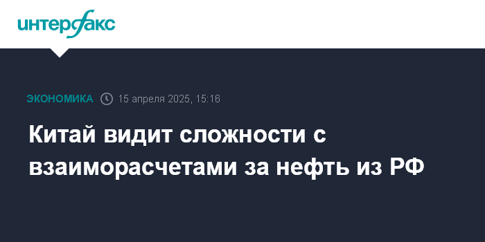 Китай видит сложности с взаиморасчетами за нефть из РФ
