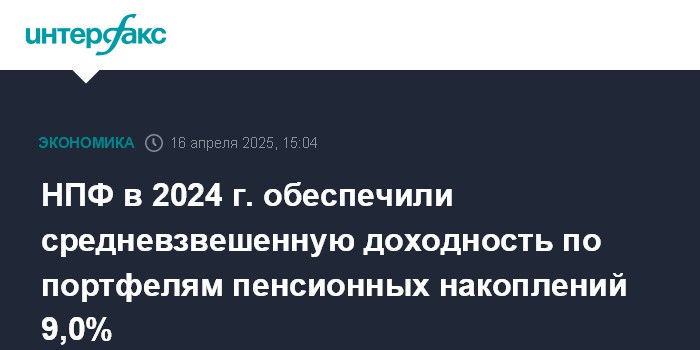 НПФ в 2024 г. обеспечили средневзвешенную доходность по портфелям пенсионных накоплений 9,0%