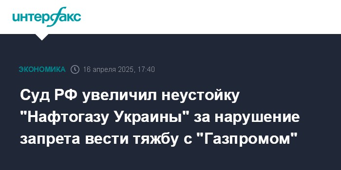 Москва. 16 апреля. INTERFAX.RU - Российский суд увеличил размер неустойки "Нафтогазу Украины" за нарушение запрета вести судебные разбирательства с "Газпромом" за пределами России, которая первоначально (в январе 2024 года) была определена в $150,107 млн, до $1,305 млрд и 1,6 млн евро, передал корреспондент "Интерфакса" из зала суда.