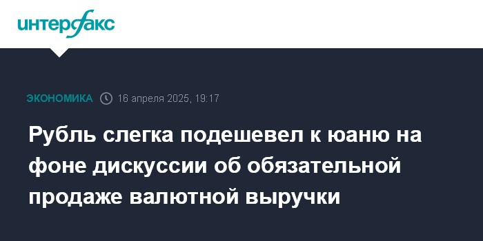 Рубль слегка подешевел к юаню на фоне дискуссии об обязательной продаже валютной выручки