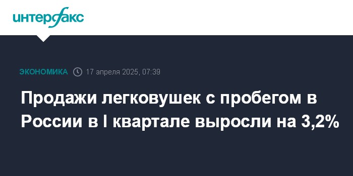 Москва. 17 апреля. INTERFAX.RU - Рынок легковых автомобилей с пробегом в I квартале 2025 года подрос на 3,2%, в марте - снизился на 10,7%, подсчитали в "Автостате".