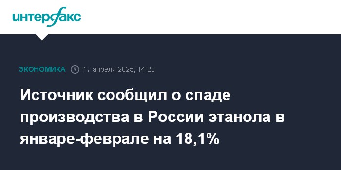 Источник сообщил о спаде производства в России этанола в январе-феврале на 18,1%