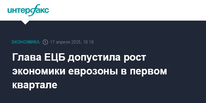 Москва. 17 апреля. INTERFAX.RU - Экономика еврозоны в первом квартале, скорее всего, выросла, заявила глава Европейского центрального банка (ЕЦБ) Кристин Лагард на пресс-конференции по итогам апрельского заседания регулятора.