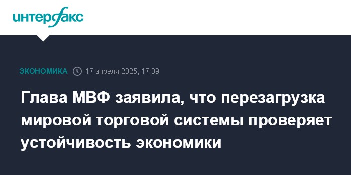 Глава МВФ заявила, что перезагрузка мировой торговой системы проверяет устойчивость экономики