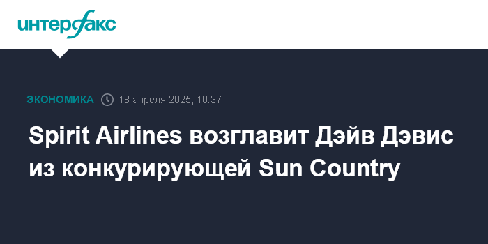 Москва. 18 апреля. INTERFAX.RU - Совет директоров американской авиакомпании Spirit Airlines назначил Дейва Дэвиса новым главным исполнительным директором компании.