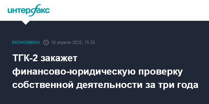 ТГК-2 закажет финансово-юридическую проверку собственной деятельности за три года