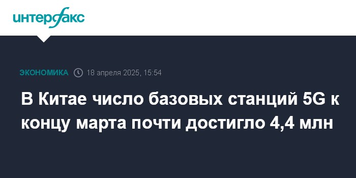 В Китае число базовых станций 5G к концу марта почти достигло 4,4 млн