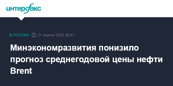 Москва. 21 апреля. INTERFAX.RU - Минэкономразвития понизило прогноз среднегодовой цены нефти марки Brent в 2025 году в базовом сценарии до $68,0 за баррель с $81,7 за баррель в сентябрьской версии прогноза, сообщил журналистам представитель Минэкономразвития.
