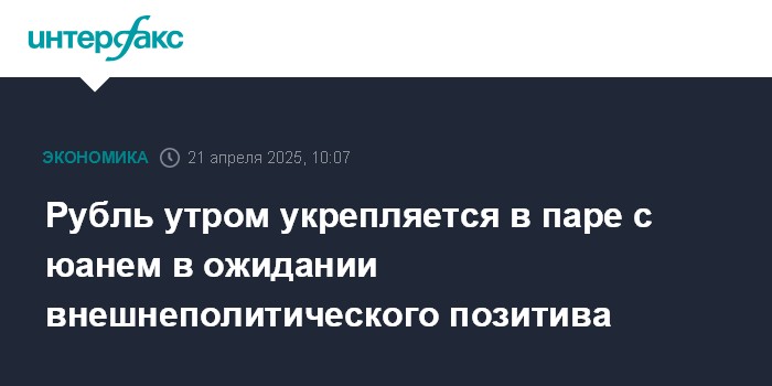 Москва. 21 апреля. INTERFAX.RU - Китайский юань понижается на Московской бирже утром в понедельник, рубль подрастает на ожиданиях внешнеполитического позитива.