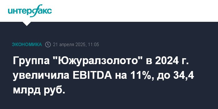 Москва. 21 апреля. INTERFAX.RU - Группа "Южуралзолото" (ЮГК) в 2024 году получила скорректированную EBITDA 34,4 млрд рублей, говорится в отчетности компании. Это на 11% больше результата 2023 года.