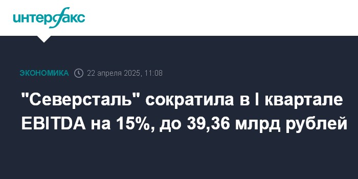Москва. 22 апреля. INTERFAX.RU - "Северсталь" в I квартале 2025 года сократила EBITDA на 15% по сравнению с четвертым кварталом, до 39,36 млрд рублей. По сравнению с аналогичным периодом прошлого года показатель упал на 40%, говорится в сообщении компании.