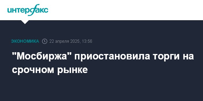 Москва. 22 апреля. INTERFAX.RU - Остановлены торги на срочном рынке "Московской биржи", сообщила пресс-служба площадки.