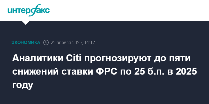 Аналитики Citi прогнозируют до пяти снижений ставки ФРС по 25 б.п. в 2025 году