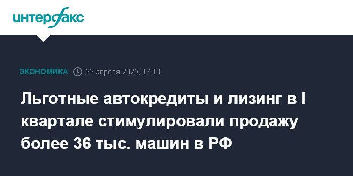 Льготные автокредиты и лизинг в I квартале стимулировали продажу более 36 тыс. машин в РФ