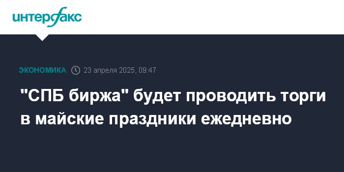 "СПБ биржа" будет проводить торги в майские праздники ежедневно