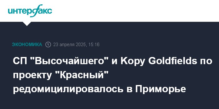 СП "Высочайшего" и Kopy Goldfields по проекту "Красный" редомицилировалось в Приморье