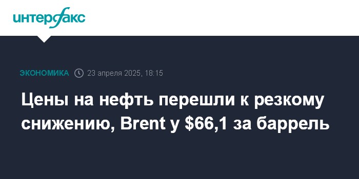 Цены на нефть перешли к резкому снижению, Brent у $66,1 за баррель