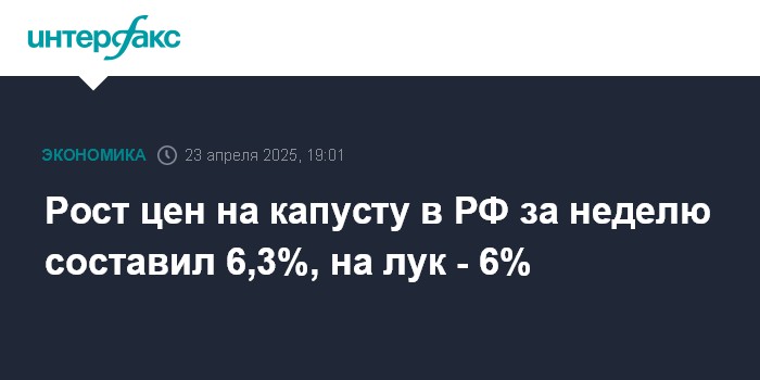 Рост цен на капусту в РФ за неделю составил 6,3%, на лук - 6%