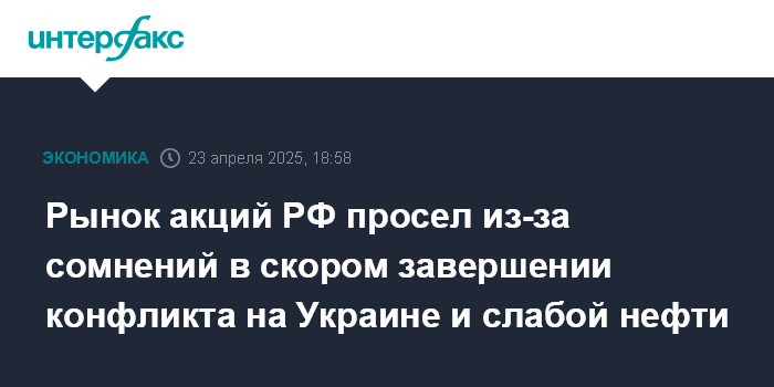 Рынок акций РФ просел из-за сомнений в скором завершении конфликта на Украине и слабой нефти
