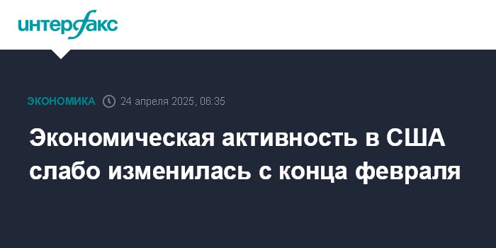 Москва. 24 апреля. INTERFAX.RU - Экономическая активность в США с конца февраля изменилась незначительно, говорится в опубликованном в среду Федеральной резервной системой (ФРС) региональном обзоре, который по цвету обложки называют Beige Book ("Бежевая книга").
