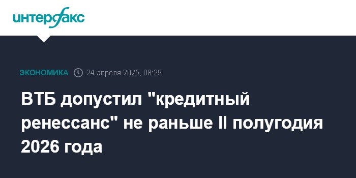 В случае перехода ЦБ к смягчению политики во втором полугодии этого года, "кредитного ренессанса", по оценке ВТБ, стоит ожидать не ранее второй половины 2026 года.