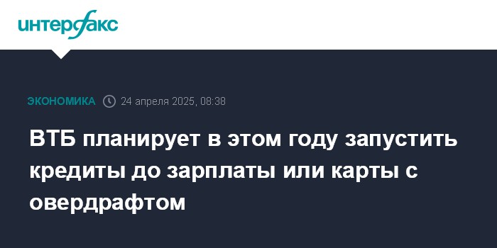 Москва. 24 апреля. INTERFAX.RU - ВТБ может в 2025 году запустить сервис кредитов до зарплаты или карты с овердрафтом, рассказал журналистам зампред правления банка Георгий Горшков.