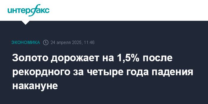 Золото дорожает на 1,5% после рекордного за четыре года падения накануне