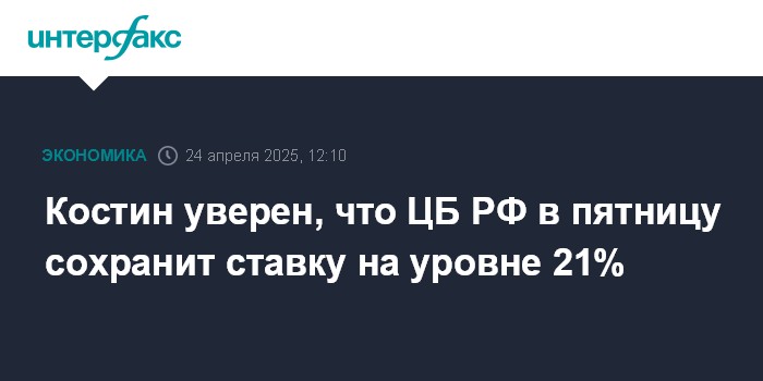 Костин уверен, что ЦБ РФ в пятницу сохранит ставку на уровне 21%
