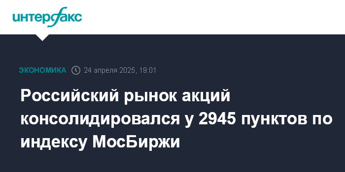 Российский рынок акций консолидировался у 2945 пунктов по индексу МосБиржи
