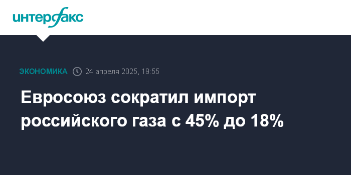 Евросоюз сократил импорт российского газа с 45% до 18%
