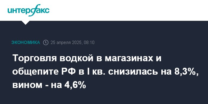 Торговля водкой в магазинах и общепите РФ в I кв. снизилась на 8,3%, вином - на 4,6%