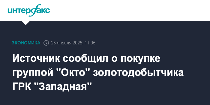 Источник сообщил о покупке группой "Окто" золотодобытчика ГРК "Западная"
